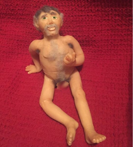 Small handmade art doll. About 4.5” tall and 5” long. Made from Polymer clay, one of a kind!